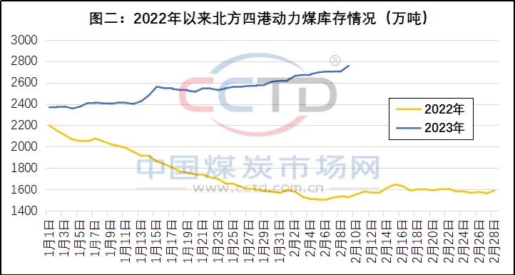 3、港(gang)口和發電企(qǐ)業的動力煤(mei)庫存被推高(gao)。受動力煤消(xiao)費🎯萎縮、采購(gou)需求低迷的(de)影響,春節過(guo)後,北方港口(kǒu)和沿海地區(qu)發電企業的(de)動力煤庫存(cún)持續走高。一(yi)方面💃🏻,截至今(jīn)年12月7日(見圖(tu)二),北方四💁港(gang)(秦皇島港、曹(cáo)妃甸港、京唐(tang)港和㊙️黃骅港(gang))的動力煤庫(kù)存為2758.1萬噸、同(tong)比增加了1230.7萬(wan)噸,處于近幾(jǐ)年來同期高(gāo)點,部分港💰口(kou)甚至不得🛀🏻不(bú)采取“疏港”措(cuo)施,以減輕庫(ku)存偏高導緻(zhi)的港口作業(ye)壓力。